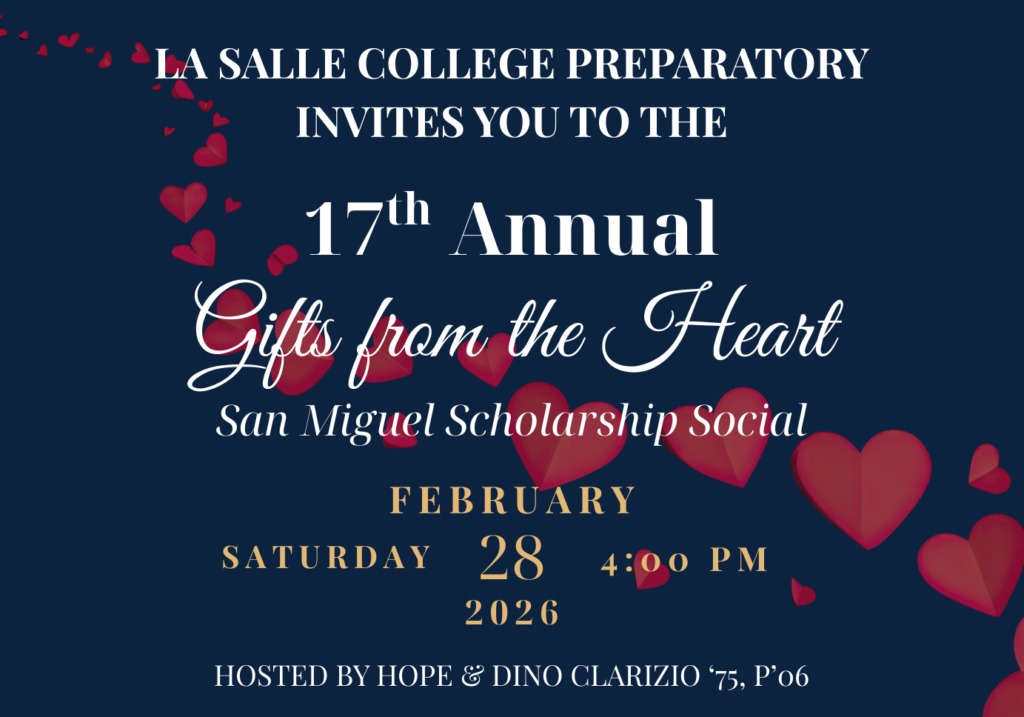 Hope and Dino Clarizio ‘75, P’06, are proud to host the 17th Annual Gifts from the Heart San Miguel Scholarship Social on Saturday, February 28, 2026. All proceeds from this event go towards the La Salle College Preparatory San Miguel Scholarship Program. This year’s special guests feature the magical Chef Anton and Friend!